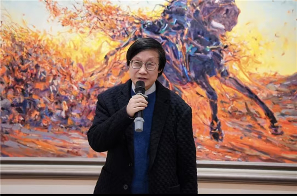 ![]() 最美中国媒体(史家治/杜艺璇/熊利华)北京报道:极地双生——臧跃军邱光平作品展在耕牛堂艺术馆盛大启幕 本次展览在四川省美术家协会、西藏美术家协会指导下,由四川通达企业集团主办,耕牛堂艺术馆承办,并得到四川省新文艺组织发展联合会、四川省油画学会、西藏油画学会、四川省古玩收藏协会的大力支持,四川福宝美术馆、兰润堂、四川跃美术馆协办。 展览汇集了两位风格迥异却精神共鸣的艺术家的近百件代表作,为金秋的成都带来一场震撼心灵的艺术盛宴。 ![]() 展览开幕式现场高朋满座,胜友如云,呈现出前所未有的盛况。 莅临现场的领导和嘉宾包括:四川省委原常委、四川政协原副主席孙同川,四川省公安厅原厅长吕卓,原四川省文化厅厅长、中国非物质文化遗产保护协会副会长、四川省非遗协会会长郑晓幸,四川省人民政府原副秘书长王七章,四川省文联原党组书记、省政协原文史学习委主任蒋东生,成都市委原常委、成都警备区原大校司令员董智勇,四川省新文艺组织发展联合会主席、四川通达企业集团董事长蒋理平,四川省新文艺组织发展联合会秘书长吴彬,中国美协理事、四川省美协原主席梁时民,达州市新文艺组织发展联合会主席、画家肖超,成都长城实业集团有限公司董事长董德寿,四川高尔夫协会副会长兼秘书长彭晋川,西藏军区原少将副司令员兼参谋长、西藏美术家协会副主席臧跃军。 同时,艺术界名家荟萃,出席画展的艺术家包括姚叶红、梁时民、张跃进、王生勇、陈志才、林跃、戴晓、龚光万、侯逸安、穆兰、张斌、薄秀政、何红英、张静涛、孟涛、唐剑辉、吴兵先、魏山人、王念东、程明刚等。现场人头攒动,气氛热烈,充分展现了本次展览在文化艺术界的广泛影响力。 ![]() 中国美协理事、中国美术家协会策展委员会委员梁时民首先上台致辞,从专业角度高度评价了展览的艺术水准。 ![]() 四川大学教授、博士生导师吴永强随后致辞,由其学生王旭明代为宣讲,深刻阐释了展览的学术价值:“臧跃军与邱光平两位艺术家,一位深耕西藏高原,以综合材料重构藏地美学;一位直面当代精神荒原,以马为喻叩问生命本质。他们在艺术探索中各自抵达了极致之境,这场'极地双生'的对话,不仅是艺术语言的碰撞,更是精神高度的共鸣。” ![]() 独立策展人,四川省油画协会秘书长,书法家汪帅上台致辞,忆及以艺术与臧跃军先生交游的往事:“臧司令常画牦牛,提款往往是‘奋进、奋斗’,如果要读懂臧司令的画,首先要先读懂‘牦牛’的精神含义——‘高原神兽’‘高原卫士’‘神山的守卫者’,寓意吉祥平安。 ![]() 四川省文联原党组书记,省政协原文史学习委主任蒋东生在致辞中肯定了展览的文化意义。他说道:“这两位艺术家的艺术探索和对话,映射在他们的作品当中,其笔下的‘牛马精神’,飞越了地平线,承载着对自然的敬畏、对生命的礼赞!” ![]() 四川省公安厅原厅长吕卓上台讲话:“臧跃军先生军旅生涯数十年,让人感动的是,他的画作始终充满活力,不断地探索、创新、发展。而邱光平笔下的马,始终在挣扎、呐喊,这是对当今社会与生态环境现状的深刻反思。” ![]() 原省文化厅长、省文联名誉主席、中国非遗保护协会副会长、省非遗保护协会会长郑晓幸发表讲话,从文化传承与创新的角度对展览给予充分肯定:“今天这两位艺术家,都坚守着自己的艺术情怀,在学术道路上始终率真、通透、热忱、不懈求索,这正是中华文化的创新道路之根基。” ![]() 参展画家代表、成都锦城学院教授邱光平致答谢辞,向所有支持展览的单位和个人表达诚挚谢意。 ![]() 最后,通达集团董事长、四川省新文艺组织发展联合会主席蒋理平宣布展览正式开幕,将现场气氛推向高潮。 ![]() ![]() ![]() 展览现场,臧跃军的《心灵佛光》系列作品与邱光平以马为主题的代表作形成鲜明而和谐的对话。 臧跃军将军旅生涯的坚毅与西藏文化的深厚底蕴融于创作之中,运用藏纸、藏香、矿物质颜料等综合材料,在传统与现代之间构建起独特的艺术语言。其作品斑驳陆离的画面背后,是艺术家对高原大地挚爱之情的真挚流露。 ![]() 邱光平的作品则以饱满的色彩 和强烈的视觉张力, 构建了一个充满生命律动的艺术世界。 ![]() ![]() 他笔下的马匹形象,既是焦虑与挣扎的载体,也是希望与生命力的象征,在凄美悲壮的基调中,传递出对当代生活的深刻思考。其跨媒介的艺术实践,展现了艺术家强大的创作能量。 ![]() 邱光平:马影中的当代精神图景】 邱光平的艺术轨迹始于学院派的写实训练, 渐始转变为一种充满人文关切与现实反思的当代表达。 1975年生于四川荣县的他, 1996年毕业于四川美术学院, 扎实的造型功底为其日后创作奠定了坚实基础。 2006年于四川大学艺术学院师从程丛林先生 获油画专业硕士学位后, 他进入四川大学锦城学院执教。 从那时以来,他的艺术探索愈发呈现出 跨媒介、跨学科趋势。 他游刃于油画、雕塑、装置、影像、 行为艺术等多种领域, 又围绕一个核心意象——马——展开, 从而将自己的艺术生涯演绎为一场与时代持久的对话。 文——吴永强 (策展人,四川大学教授,博士生导师) 视觉对话 精神共鸣 ![]() ![]() 展览主题"极地双生"蕴含深意,揭示了艺术创作中殊途同归的精神本质。纵观艺术史,但凡独具风貌的创作者,必有其执着坚