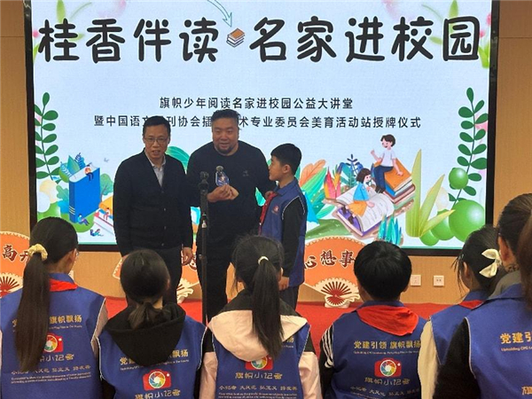 金秋送爽,桂香沁人。10月29日,桂香伴读·名家进校园——旗帜少年阅读名家进校园公益大讲堂暨中国语文报刊协会插图艺术专业委员会美育活动站授牌仪式在雄安长丰小学举办。 ![]() 雄安雄东长丰小学校长姜军、中国美术家协会会员、中国工笔画学会会员。现为中国教育部语文现代化学会理事、中国语文报刊协会插图艺术专业委员会理事长,中国教育部、工信部、科技部、国家检察官学院、国防大学、军事科学院等部门特聘书画老师刘振平、著名美术评论家、出版策划专家、“非遗百科”主讲人,北京工艺美术出版社任职、北京工艺美术学会理事杨玲艳(笔名:杨宇、杨硕)、宫廷细金工艺传承人,锐錾堂联合创始人,旗帜小记者(北京)事业中心主任陈立鹏、中国工艺美术大师口述史项目现场导演、书标非遗文创书店主理人、北京众艺智汇文化发展有限公司总经理王朝阳、旗帜小记者创始人、中国语文报刊协会插图艺术专业委员会副秘书长杜海义等参加本次活动。 ![]() ![]() 本次活动以精彩阅读分享、舞台剧等多形式呈现,雄安雄东长丰小学校长姜军:桂香漫过长丰小学,也把“阅读”的种子种进了每个孩子心里——“桂香伴读·名家进校园”公益大讲堂开讲,中国语文报刊协会插图艺术专业委员会美育活动站落地我校,这是属于长丰小学全体师生的“阅读盛宴”,更是我们深耕“以读育人”办学理念的重要契机。在此,我代表学校,向远道而来的名家们、各位领导致以最热烈的欢迎和最诚挚的感谢!阅读是孩子成长最温暖的“阶梯”。在长丰小学,我们始终相信:一本好书能照亮童年,一次深度阅读能滋养一生。从入学第一天起,我们就把“阅读”放进孩子的每日生活——晨读时的朗朗书声、课间的书页翻动、放学后的“亲子共读”时光,都是孩子们与世界对话的方式。我们希望通过阅读,让孩子不仅认识汉字的笔画,更能读懂文字背后的故事、情感与思想,让阅读成为他们探索未知、塑造品格的“精神罗盘”。分级阅读,是我们为孩子量身定制的“阅读导航图”。我们深知,不同年级的孩子,认知能力、阅读需求截然不同:低年级的孩子,我们用色彩鲜活的绘本、朗朗上口的童谣搭建“阅读启蒙台”,让他们在图画与文字的碰撞中爱上读书;中年级的孩子,我们推荐短篇童话、科普小故事,引导他们学会梳理情节、表达感受;高年级的孩子,我们引入经典片段、乡土文化读本,鼓励他们思考文字背后的道理。 ![]() 过去一年,我们看到低年级孩子的识字量显著提升,中年级孩子的作文里多了生动的细节,高年级孩子能主动分享对“雄安故事”的理解——这就是分级阅读的力量,让每个孩子都能“读有所得、读有所乐”。而“扎根雄安、融美于读”,是我们长丰小学独有的阅读办学特色。让“阅读”与“美育”撞出火花,让阅读真正成为长丰小学的“校园底色”。 ![]() 中国教育部语文现代化学会理事、中国语文报刊协会插图艺术专业委员会理事长刘振平:今天,我们齐聚雄安长丰小学,共同见证“桂香伴读·名家进校园”公益大讲堂启幕,也迎来中国语文报刊协会插图艺术专业委员会美育活动站的落地——这既是阅读与美育的“双向赋能”,更是我们以语文之力滋养雄安少年成长的重要起点。在此,我谨代表专委会,向长丰小学全体师生致以热烈祝贺,向支持本次活动的各位同仁致以诚挚感谢!语文教育的真谛,在于让孩子“在文字里见天地,在感知中悟美好”。 ![]() 这些年,我们始终在探索:如何让阅读跳出“单纯识字读文”的框架,成为兼顾知识、审美与情感的综合体验?长丰小学给出的答案让我格外欣慰——你们推行的分级阅读,从低年级绘本启蒙、中年级故事启智到高年级经典悟道,精准匹配了不同学段孩子的认知规律,让“每个孩子都能找到适合自己的读书节奏”;而你们将“雄安故事”融入阅读的特色实践,更让书本里的文字有了家乡的温度,让孩子们在读懂文字的同时,更读懂了自己生长的这片土地。 ![]() 北京工艺美术出版社、北京工艺美术学会理事杨玲艳:当桂香漫进长丰小学的校门,当书页翻动的声音与孩子们的目光相遇,今天这场“阅读与美育”的相聚,便有了最动人的底色。作为一名长期深耕美术评论、出版策划,且始终在“非遗百科”里挖掘传统文化之美的从业者,能走进雄安、走进这所充满书韵的校园,我深感荣幸。在此,也谨向美育活动站的落地表示热烈祝贺,向为孩子们搭建这片“读美相融”天地的每一位同仁致以敬意!在我看来,“阅读”从来不是文字的独角戏,而“美术”恰是让文字活起来的最佳搭档——这与今天美育活动站的初心不谋而合。作为“非遗百科”的主讲人,我更期待在这里看到“阅读+美术+非遗”的奇妙碰撞。雄安这片土地,本身就藏着太多可读、可画的文化宝藏:白洋淀的芦苇画、雄县的黑陶、安新的剪纸……这些非遗技艺,既是家乡的“活历史”,也是最好的美术素材。未来,或许我们可以带着孩子读一篇雄安的民间故事,再用剪纸剪出故事里的场景;或许我们可以读一段非遗传承人的故事,再用画笔勾勒他们手上的技艺——当阅读的文字转化为可触可感的美术作品,当非遗的温度融入孩子的创作,“美育”便有了扎根家乡的深度,“阅读”也有了连接传统的厚度。 ![]() 桂香伴读·名家进校园——旗帜少年阅读名家进校园公
