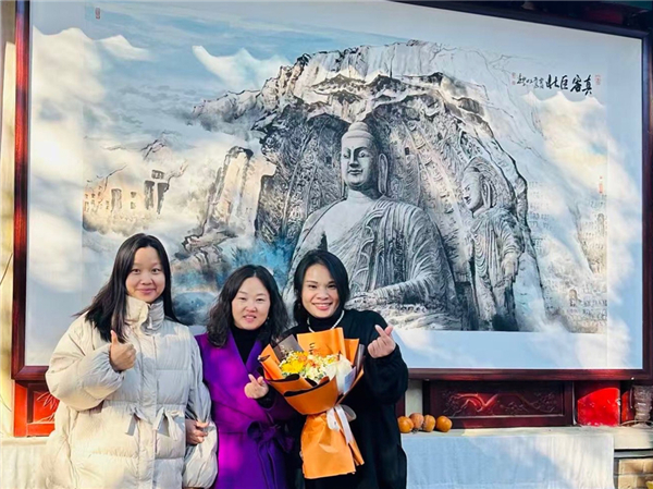 ![]() 夜校星光 如此灿烂 ——中国书画家网 海 东 几天前就知道《中华艺术家》杂志社在筹办 “如是菩提”林子佛教艺术展,昨天接到邀请,今天一早我们“中国书画家网”记者便来到展厅,林子老师云冈石窟“真容巨壮”的巨幅作品一下子震撼到我们。紧接着便是一幅幅星光夜校敦煌艺术研习班的学员作品,令人惊艳不已。素人执笔的作品竟然如此精美,这真让我们始料未及。 ![]() 《真容巨壮》 林子 曾文田 (合作) 根据林子老师的介绍,这些作品有8-9岁的小学生、有在其他工作岗位贡献卓著又怀有艺术梦的工程师、发明家、有的是母女都有作品的亲子系列,有的是摄影师、设计师和一些企事业单位翘楚……看到他们的作品,我们都觉得社区夜校这种贴近生活的学习形式很棒!这种面向社区居民、利用业余时段、提供普惠性非学历教育的模式非常好!我们为星光夜校敦煌艺术班的师生联展叫好! 感动我们的不仅仅是作品,更有带着虔诚、真诚、真心、匠心的精神力量。我不敢有片刻耽搁,以最快的速度将他们的作品分享给所有读者和观众。 ![]() 王楷乔 9岁 敦煌莫高窟 159窟之文殊菩萨 (泥板) ![]() 唐玮林 9岁 莫高窟275窟鹿王本生 (泥板) ![]() 王菽乙 8岁 莫高窟275窟鹿王本生 (泥板) ![]() 许艺宝 莫高窟39窟飞天 (纸本) ![]() 刘威 莫高窟57窟观音 (泥板) ![]() 陈泉 莫高窟112窟反弹琵琶(纸本) ![]() 魏玮 莫高窟57窟供养菩萨(纸本) ![]() 刘丽 榆林窟3窟普贤变(纸本) ![]() 崔楠 莫高窟57窟供养菩萨(纸本) ![]() 王海鸥 榆林窟25窟弥勒经变之文殊(泥板) ![]() 娄婷 榆林窟25窟文殊变(泥板) ![]() lexi 莫高窟57窟供养菩萨(纸本) ![]() 沈云 莫高窟159维摩诘经变之文殊菩萨 (泥板) ![]() 指导老师 林子 水月观音 (仿古麻纸) 指导老师曾文田曾经这样描写星光夜校敦煌艺术研习班的学员作品:原以为初次落笔只是寻常墨色,却未想你第一次握笔,竟让敦煌的风从笔尖漫了出来。那些壁画上的菩萨充满了佛性、飞天也有了神采、笔下的佛手流露出灵气,色彩晕染间藏着石窟里千年的文化温润,我知道你们始于对敦煌的喜爱而不是想刻意摹仿她的的匠气,看到你们的画,倒像指尖藏着敦煌的魂——仿佛不是你在画敦煌,是敦煌借着你的笔,轻轻落了一次地……. 祝贺“如是菩提”林子佛教艺术展暨星光夜校敦煌艺术研习班师生作品展圆满成功! ![]() ![]() |