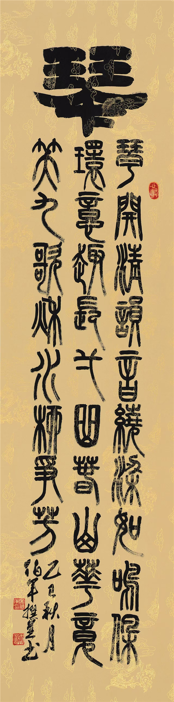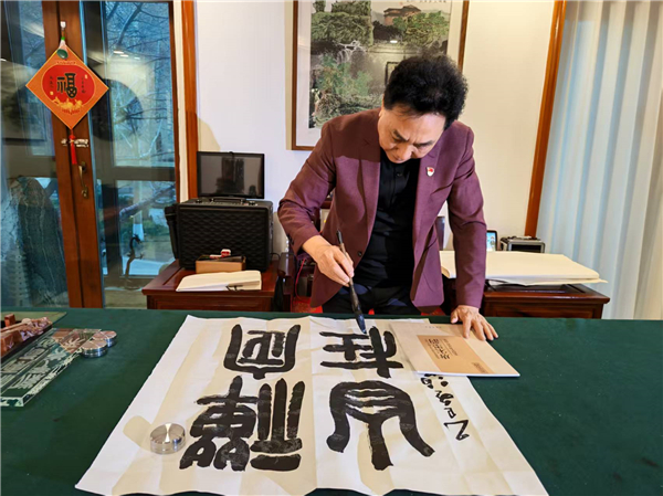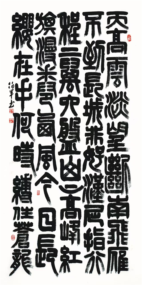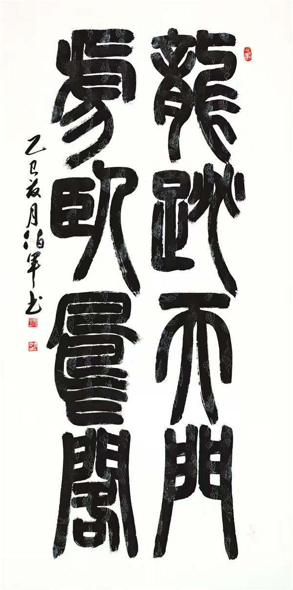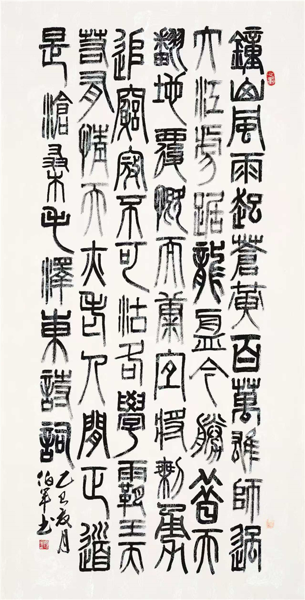 ![]() 2025年冬,暖阳穿牖,漫过宋伯军(字扶阳,号林翰,宽博斋主)工作室的案头。案头展陈的《禅定自在》篆幅墨香未散,旁侧叠放着刚完成的《李白·清平调》《刘禹锡·秋日过鸿举法师》等篆书诗卷——笔锋起落间,商周鼎彝的古拙、秦汉金石的沉雄与当代生活的温度正交织成篇。作为中国书画家联谊会副主席、丝绸之路文化国际交流中心主席的他,眸底藏着三千年文脉沉淀的温润,抬眼望向窗外冬阳,与京秀对坐,以篆为言,叙说华夏文明薪火相传、文脉永续的深意。 中国书法向来讲“书如其人”,朱彝尊《曝书亭集》言:“余少时学此,时则父文学顾书《臆赠帖》云:‘余以字以画古今消之,其父谓余:“余所学,唐之忠恕;公所学者,汉之麒麟耳!”予默然无以应。’”足见作品格调,实与创作者品格息脉相通。军旅书法家宋伯军先生自习书以来,以真诚为笔、以蕴藉为墨,融几十载军旅修为于笔墨肌理,溯甲骨之契刻,宗金文之浑朴,承秦篆之规整,取汉隶之古拙,成“书品与人品双馨”之境——作品既显商周甲骨的刀痕意趣、秦汉金石的斑驳底蕴,又彰军人刚毅的风骨、文人温润的气韵,故得业界内外共赏。正如中国书法家协会理事罗杨教授所言,其篆书最可贵在“融”与“守”:守的是仓颉造字之灵、篆法矩矱之正、文脉根魂之深,融的是军旅气度之刚、乐律意趣之活、当代温度之暖,堪称“文心铸魂、笔墨传情”的典范。 篆笔藏锋:刚柔相济的笔墨哲思 阳光斜洒在案头未竟的《孟浩然·春晓》小篆长卷(138cm×68cm),“眠”字长横如冬阳铺展,沉厚中藏《石鼓文》“天圆地方”的呼吸之韵;“啼”字点画似雀跃光斑,灵动间不堕《散氏盘》圆转流美的浮滑之弊。宋伯军先生执羊毫蘸墨落纸,指尖一提一按,《禅定自在》篆幅已跃然纸上——“禅”字长竖如大提琴延音沉雄,暗合《石鼓文》“车驾雍容”的雄浑气象,临帖时他曾对“禅”字长竖的弧度反复打磨,三次调整墨色浓淡,既守《石鼓文》“力透纸背”的沉雄骨架,又参《曹全碑》隶书的波磔意趣,添当代笔墨的呼吸感;“定”字点画似扬琴跳音轻俏,暗含《散氏盘》“线条如筋”的圆转意趣,转折处晕开的玉润弧度里,裹着火箭军生涯淬出的稳准力道,亦藏《兰亭序》“意在笔先”的文人巧思。 这位北京书法家协会社工委副主任笑言:“火箭军的靶要瞄得准,篆书的线也要走得稳,但稳里得有‘活气’——这活气,是甲骨契刻的刀痕余韵,是金文熔铸的烟火温度,是笔墨的呼吸,也是时代的脉搏。”时有观者叹其“篆书第一人”,他闻言抚卷浅笑,目光掠过墙上节临《汉祀三公山碑》(138cm×68cm):“秦李斯‘玉箸笼烟’立篆法之宗,唐李阳冰‘铁线凌云’承其风骨,清邓石如‘隶骨融篆’拓其新境,古之大家如星汉璀璨,今日书家亦各有千秋,我何敢当‘第一’?不过是溯流而上,承前贤余脉,以军旅淬笔力,以乐律通笔韵,从甲骨、金文、秦篆、汉隶中汲取养分,让千年篆韵在当代得以弘扬而已。” 话落,他展平刚成的《李白·清平调》篆卷,墨色在阳光下泛着绒边:“写‘云想衣裳花想容’时,我以《散氏盘》的古拙结体立骨,求其商周金文的厚重;‘春风拂槛露华浓’的‘露’字,又融吴昌硕‘以金石入书’的苍劲笔意,取其秦汉金石的灵动——每一笔都守篆法矩矱,却不困于陈规,就像临《散氏盘》‘露’字的结构,既循碑帖‘圆转如环’的法度,又刻意放缓收笔速度,让墨痕自然晕散,少了几分古碑的冷峻,多了几分《诗经》‘风花雪月’的温润意趣。”这份“守矩不守死”的智慧,让他的篆书既得商周鼎彝之骨、秦汉金石之魂,又焕当代生活之韵,恰如叶培贵点评所指,其线条无矫揉之态,结体无板滞之弊,以“书以载道”的初心,让千年篆韵在当代有了鲜活的生命质感。 篆途承脉:四代相传的文化坚守 案头旁的博古架上,历代篆书名碑拓本(《石鼓文》《散氏盘》《祀三公山碑》原色拓片)、恩师马俊明的篆刻印章(仿汉“白文印”章法)整齐陈列,阳光落在魏长青、李文新的墨宝复制品上,纸页褶皱里藏着四代人薪火相传的文脉轨迹——祖父翰林出身,临《峄山碑》的秦篆风骨;外祖父专攻柳体,融篆意于楷书;父亲深耕隶篆,参《曹全碑》于篆书;到他这一代,更是博采众长,贯通古今。 宋伯军先生捻起一枚“萃文阁”老印章(民国年间仿汉印形制),指腹摩挲着印文棱线,转而铺展《王维·九月九日忆山东兄弟》篆联:“这联里的‘遍插茱萸少一人’,‘遍’字是外祖父教我的柳体筋骨,暗合《说文解字》‘六书’造字之法;‘少’字的婉转,是父亲临帖时的笔意,参《乙瑛碑》隶书的古拙——我的篆书,是站在前辈的肩膀上,一步步浸润于文脉深处的。”宋伯军生于诗书传家的门第,祖父曾入翰林,“翰林”二字既是家族荣光,亦是他自小背负的文化责任。幼年时,别家孩童放学嬉戏,他面对的却是研好的墨、铺展的纸——每日两小时的书法功课,是雷打不动的“必修课”:清晨临《峄山碑》练秦篆的规整,午后摹《散氏盘》悟金文的圆转,傍晚习《祀三公山碑》参汉篆的古拙。 彼时的枯燥与苦恼,在岁月沉淀中渐渐化为笔墨的“筋骨”;火箭军坑道里,他以水代墨、以壁为纸的坚守,哪怕指尖冻裂,仍对《石鼓文》“车”字的线条弧度反复揣摩调整,追溯商周时期战车的形制,体悟古人“天人合一”的审美追求;拜师马俊明先生后,沐手焚香、临帖不辍的虔