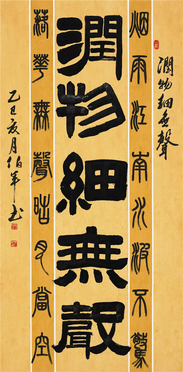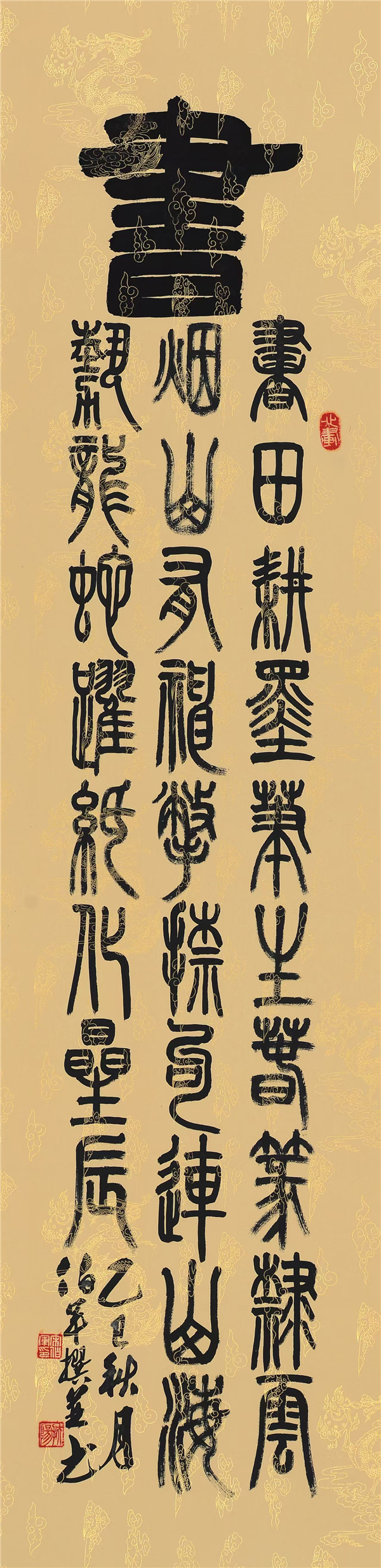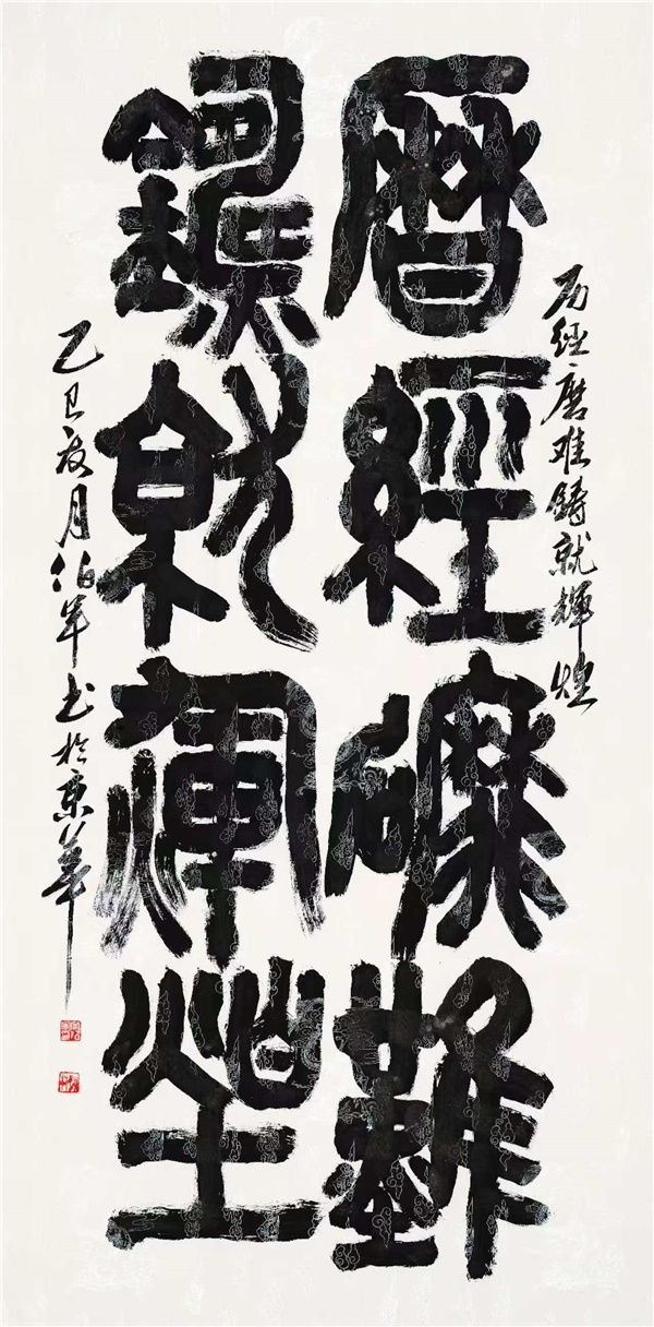 ![]() 2025年冬,暖阳穿牖,漫过宋伯军(字扶阳,号林翰,宽博斋主)工作室的案头。案头展陈的《禅定自在》篆幅墨香未散,旁侧叠放着刚完成的《李白·清平调》《刘禹锡·秋日过鸿举法师》等篆书诗卷——笔锋起落间,商周鼎彝的古拙、秦汉金石的沉雄与当代生活的温度正交织成篇。作为中国书画家联谊会副主席、丝绸之路文化国际交流中心主席的他,眸底藏着三千年文脉沉淀的温润,抬眼望向窗外冬阳,与京秀对坐,以篆为言,叙说华夏文明薪火相传、文脉永续的深意。 中国书法向来讲“书如其人”,朱彝尊《曝书亭集》言:“余少时学此,时则父文学顾书《臆赠帖》云:‘余以字以画古今消之,其父谓余:“余所学,唐之忠恕;公所学者,汉之麒麟耳!”予默然无以应。’”足见作品格调,实与创作者品格息脉相通。军旅书法家宋伯军先生自习书以来,以真诚为笔、以蕴藉为墨,融几十载军旅修为于笔墨肌理,溯甲骨之契刻,宗金文之浑朴,承秦篆之规整,取汉隶之古拙,成“书品与人品双馨”之境——作品既显商周甲骨的刀痕意趣、秦汉金石的斑驳底蕴,又彰军人刚毅的风骨、文人温润的气韵,故得业界内外共赏。正如中国书法家协会理事罗杨教授所言,其篆书最可贵在“融”与“守”:守的是仓颉造字之灵、篆法矩矱之正、文脉根魂之深,融的是军旅气度之刚、乐律意趣之活、当代温度之暖,堪称“文心铸魂、笔墨传情”的典范。 篆笔藏锋:刚柔相济的笔墨哲思 阳光斜洒在案头未竟的《孟浩然·春晓》小篆长卷(138cm×68cm),“眠”字长横如冬阳铺展,沉厚中藏《石鼓文》“天圆地方”的呼吸之韵;“啼”字点画似雀跃光斑,灵动间不堕《散氏盘》圆转流美的浮滑之弊。宋伯军先生执羊毫蘸墨落纸,指尖一提一按,《禅定自在》篆幅已跃然纸上——“禅”字长竖如大提琴延音沉雄,暗合《石鼓文》“车驾雍容”的雄浑气象,临帖时他曾对“禅”字长竖的弧度反复打磨,三次调整墨色浓淡,既守《石鼓文》“力透纸背”的沉雄骨架,又参《曹全碑》隶书的波磔意趣,添当代笔墨的呼吸感;“定”字点画似扬琴跳音轻俏,暗含《散氏盘》“线条如筋”的圆转意趣,转折处晕开的玉润弧度里,裹着火箭军生涯淬出的稳准力道,亦藏《兰亭序》“意在笔先”的文人巧思。 这位北京书法家协会社工委副主任笑言:“火箭军的靶要瞄得准,篆书的线也要走得稳,但稳里得有‘活气’——这活气,是甲骨契刻的刀痕余韵,是金文熔铸的烟火温度,是笔墨的呼吸,也是时代的脉搏。”时有观者叹其“篆书第一人”,他闻言抚卷浅笑,目光掠过墙上节临《汉祀三公山碑》(138cm×68cm):“秦李斯‘玉箸笼烟’立篆法之宗,唐李阳冰‘铁线凌云’承其风骨,清邓石如‘隶骨融篆’拓其新境,古之大家如星汉璀璨,今日书家亦各有千秋,我何敢当‘第一’?不过是溯流而上,承前贤余脉,以军旅淬笔力,以乐律通笔韵,从甲骨、金文、秦篆、汉隶中汲取养分,让千年篆韵在当代得以弘扬而已。” 话落,他展平刚成的《李白·清平调》篆卷,墨色在阳光下泛着绒边:“写‘云想衣裳花想容’时,我以《散氏盘》的古拙结体立骨,求其商周金文的厚重;‘春风拂槛露华浓’的‘露’字,又融吴昌硕‘以金石入书’的苍劲笔意,取其秦汉金石的灵动——每一笔都守篆法矩矱,却不困于陈规,就像临《散氏盘》‘露’字的结构,既循碑帖‘圆转如环’的法度,又刻意放缓收笔速度,让墨痕自然晕散,少了几分古碑的冷峻,多了几分《诗经》‘风花雪月’的温润意趣。”这份“守矩不守死”的智慧,让他的篆书既得商周鼎彝之骨、秦汉金石之魂,又焕当代生活之韵,恰如叶培贵点评所指,其线条无矫揉之态,结体无板滞之弊,以“书以载道”的初心,让千年篆韵在当代有了鲜活的生命质感。 篆途承脉:四代相传的文化坚守 案头旁的博古架上,历代篆书名碑拓本(《石鼓文》《散氏盘》《祀三公山碑》原色拓片)、恩师马俊明的篆刻印章(仿汉“白文印”章法)整齐陈列,阳光落在魏长青、李文新的墨宝复制品上,纸页褶皱里藏着四代人薪火相传的文脉轨迹——祖父翰林出身,临《峄山碑》的秦篆风骨;外祖父专攻柳体,融篆意于楷书;父亲深耕隶篆,参《曹全碑》于篆书;到他这一代,更是博采众长,贯通古今。 宋伯军先生捻起一枚“萃文阁”老印章(民国年间仿汉印形制),指腹摩挲着印文棱线,转而铺展《王维·九月九日忆山东兄弟》篆联:“这联里的‘遍插茱萸少一人’,‘遍’字是外祖父教我的柳体筋骨,暗合《说文解字》‘六书’造字之法;‘少’字的婉转,是父亲临帖时的笔意,参《乙瑛碑》隶书的古拙——我的篆书,是站在前辈的肩膀上,一步步浸润于文脉深处的。”宋伯军生于诗书传家的门第,祖父曾入翰林,“翰林”二字既是家族荣光,亦是他自小背负的文化责任。幼年时,别家孩童放学嬉戏,他面对的却是研好的墨、铺展的纸——每日两小时的书法功课,是雷打不动的“必修课”:清晨临《峄山碑》练秦篆的规整,午后摹《散氏盘》悟金文的圆转,傍晚习《祀三公山碑》参汉篆的古拙。 彼时的枯燥与苦恼,在岁月沉淀中渐渐化为笔墨的“筋骨”;火箭军坑道里,他以水代墨、以壁为纸的坚守,哪怕指尖冻裂,仍对《石鼓文》“车”字的线条弧度反复揣摩调整,追溯商周时期战车的形制,体悟古人“天人合一”的审美追求;拜师马俊明先生后,沐手焚香、临帖不辍的虔