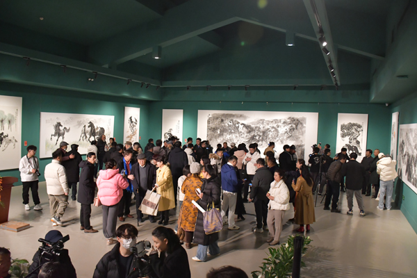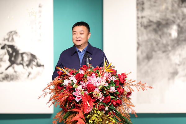 ![]() 12月18日,一场以骏马为主题的水墨艺术大展“鸿马 谈笑往来——鸿伟画马展”在书画频道启幕,为即将到来的马年献上一份水墨厚礼。展览由书画频道、中共铁岭市委宣传部、中共铁岭县委主办,书画频道中国书画艺术研究院、鸿马艺术馆承办,中国马业协会文化艺术委员会、深圳市马术协会、北京八荒锦绣文化发展有限公司等单位协办,并获得中国马业协会、铁岭市文学艺术界联合会的支持。展览中,孙宏伟以马为载体的系列作品集中亮相,以腾跃淋漓的笔墨、浑然天成的气韵,为观众带来一场融汇传统精神与时代审美的视觉篇章。 ![]() ![]() 中国文联原副主席杨承志,第十二届全国政协社会和法制委员会驻会副主任顾伯平,中国国家画院原院长卢禹舜,中国美协理论委员会原副主任王仲,中央文史研究馆馆员马振声,中国国家画院原副院长纪连彬,民革中央画院院长孔维克,中共铁岭市委宣传部部长辛彦军,中共铁岭县委书记常东旭,铁岭市政府驻京办主任王晓利,中国马业协会秘书长岳高峰,书画频道董事局主席王平,书画频道总裁李培元以及著名艺术家曹春生、郭石夫、刘曦林、孔紫、张金玲、文旅部中国国际书画艺术研究会副会长沉浮、李庚、邢少臣、萧玉田、赵准旺、王天胜、胡宝利、吴团良、莫晓松,于洋、白国文、刘汝阳、李雪松,张正、张金玲、萧玉田、刘金贵、梁永琳、梅启林、陈良敏、陆学东、孔志刚、杨兴龙、程宝林、贾荣志、蔡彦君、沈绍基、陈建国、何江、许建国、陈晓婷、吴欢、张泽石、赵文江、马硕山、包洪波、白国文、梁振华、孙志刚、邓绍炳、张广志、刘金党、郑美秋、陈晓峰、马世骥、盛怀杰、蒋志鑫、梁宝民、马静荣、雨菲、盛鸣、邓大伟、王卓、孙雪峰、王德礼、任赛、刘扬、张桐瑀、郑贵、崔学奇、谭武壮、郭毅、姚瑞江、丁智勇、关宏、大力、王东、萧晗、谢辉、王贵鹏、张贤兰、安慧、靳文艺、辽宁鸿马艺术馆馆长、深圳马术协会文化委员会主席、本次展览艺术家孙宏伟等百余位嘉宾出席展览开幕式。 ![]() 中华文化促进会常务副主席、书画频道董事局主席王平致辞 ![]() 中共铁岭市委常委、宣传部部长辛彦军致辞 ![]() 中国美协理论委员会原副主任、《美术》杂志主编王仲致辞 王平、辛彦军、王仲在发言中指出,孙宏伟作为画家和社会活动家,其艺术深植于铁岭丰沃的黑土地,他的作品散发着感染人心的视觉冲击力与激情。书画频道与铁岭历来有着深厚的情谊与坚实的合作基础,期待今后以马文化为纽带,共同推动文化的传承与创新。 ![]() 中国国家画院原院长、中国传媒大学中国画研究院院长、中国艺术研究院博导卢禹舜致辞 ![]() 中国马业协会书记、秘书长岳高峰致辞 卢禹舜、岳高峰深入阐述了展览主题“谈笑往来”的深层含义。展出的五十余幅画作,不仅体现了孙宏伟对艺术的执着坚守与潜心钻研,更映射出其为人、为艺的真挚态度与对生活的热爱。 ![]() 中国美协蒋兆和艺术研究会会长、中央文史馆资深馆员、教授马振声致辞 ![]() 第十二届全国政协社会和法制委员会驻会副主任顾伯平致辞 马振声、顾伯平提到,孙宏伟的画如其人,气场充沛、能量饱满。他虽非科班出身,却凭借对绘画的热爱与铁岭厚土的滋养,以及其对社会的担当精神,一步步成长起来。他的作品深植于中国画马传统精神,笔墨间奔涌着中华民族不屈不挠、自强不息的精神气韵。 ![]() 中国马业协会文化委员会执行会长、深圳马术协会文化委员会主席、鸿马艺术馆馆长孙宏伟致答谢词 孙宏伟在答谢词中表示,此次画展承载着他几十年的美术梦想,其奔马画作中汇聚着辽北大地的风骨、家乡父老的期盼与师长的教诲。他感谢书画频道与家乡对此次展览的支持,并着重提及王仲、卢禹舜、马振声等老师多年来言传身教的指导。二十余年的与马为伴,成为他创作中最坚实的底色与不竭的灵感源泉。 书画频道中国书画艺术研究院院长徐里与厦门市文学艺术界联合会为展览开幕发来贺词,致以热烈祝贺。 随着《节日欢歌》的唱响,将开幕式现场的欢庆气氛推向高潮。 ![]() ![]() ![]() ![]() ![]() ![]() 孙宏伟其艺术生涯与“马”紧密相连。他属马,亦敬马、爱马、养马、骑马,终以画马为毕生志业。二十余年来,潜心于马主题的水墨创作,在传承中广收博取,逐步构建起融汇传统笔墨与当代审美的风格体系。 马,自古承载着自由、力量与忠诚的精神意象。孙宏伟承袭这份文化基因,凭借对艺术的赤诚、经年不懈的耕耘与颖悟,走出了一条独特的绘马之路。他的创作显露出不拘成法的灵气:技法上精心经营画面结构,将写实与写意、具象与抽象融合,拓展水墨的当代表现力;语言上融汇传统岩彩等技法,既以矿物颜料细致勾勒马匹筋骨肌理,又在写意水墨中捕捉群马奔腾时浑然流动的生命气象,于淋漓墨色间既延续气韵生动的古典韵味,又焕发出充满视觉张力的现代意境。 ![]() 孙宏伟对马的痴迷与敬重,不止于对其神态的精准捕捉,更在于对马性灵的深刻体悟与艺术表达。他突破传统鞍马画将马作为礼制符号的桎梏,为其笔下骏马注入鲜活的人文精神与时代气息。那些挣脱鞍鞯束缚的骏马,或奔腾驰骋、气势如虹,或静立凝思、意态从容,尤其是情绪欢跃、富于动感的群马形象,更焕发着感染人心的生命活力。 ![]() ![]() ![]() ![]() ![]() ![