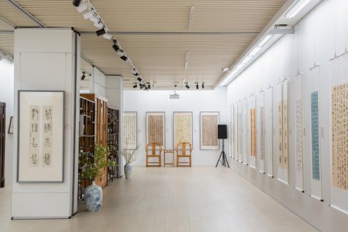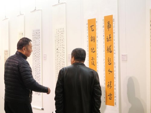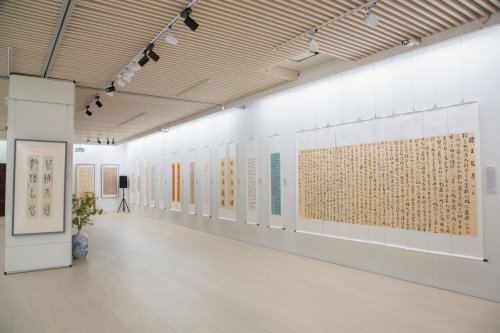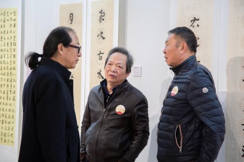 魏驾雾、张智重代表北京介居书院美术馆接受参展书法家秦柏柳捐赠作品《佛遗教经》长卷 开幕式现场,中共中央宣传部原秘书长官景辉、最高人民法院办公厅原副主任于新年,中国书法家协会理事梁永琳、张世刚、刘楣洪、张公者、孙佩杰,《中国故事》杂志社社长魏驾雾、北京介居书院美术馆馆长张智重,以及吕书庆、温广为、曹新元、崔世广、赵青仲、宋伯军、刘西园、张良、周明华、王晖、丁剑等艺术界名家出席,电视连续剧《书圣王羲之》卫夫人扮演者唐妤萌担任主持。