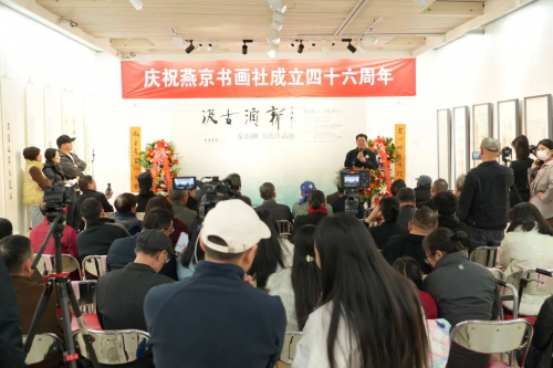 观展嘉宾合影 正如评论家刘释之先生在其文章中所述:“柏柳兄的章草,得皇象之沉着、索靖之谨密、陆机之斑驳。他深知章草最难在写出‘古意’,而他的成功,正是将这份古意化为个人修养的自然流露。”这种以传统为本根,以己意为新体的创作理念,完美诠释了“汲古润新”的展览主题。 展览由北京介居书院美术馆主办,燕京书画社美术馆承办,并得到沈鹏艺术公益基金、中国故事融媒体、悦驰(广州)供应链有限公司等单位协办支持。 据悉,展览将持续至10月31日,这场兼具学术深度与艺术魅力的展览,无疑为当代书法的传承与创新提供了宝贵的范本与启示。 开幕现场