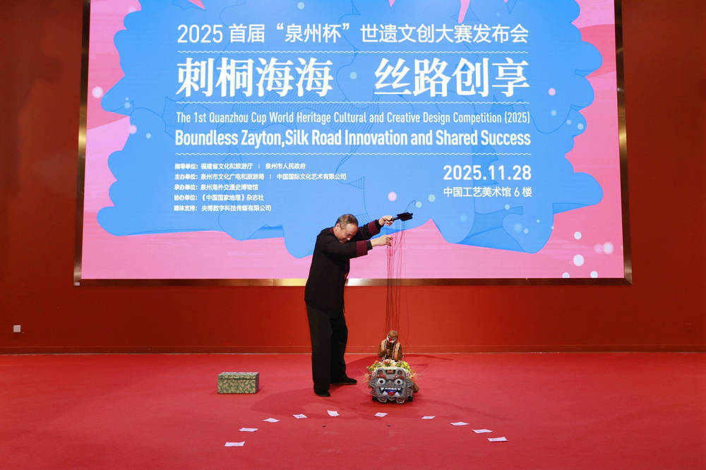 11月28日,2025首届“泉州杯”世遗文创大赛发布会暨启动仪式在中国工艺美术馆(中国非物质文化遗产博物馆)圆满举行。本次大赛由福建省文化和旅游厅、泉州市人民政府指导,泉州市文化广电和旅游局主办,福建省泉州海外交通史博物馆承办。