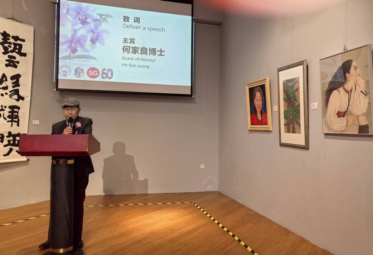 艺绘两国--新中同绘世界国际艺术交流邀请展在新加坡华中文化中心开幕。本次展览由新加坡妇女艺术协会主办,展览展出了中国及新加坡两国多位艺术家创作的100多幅作品,作品涵盖了中国画、油画、书法、综合材料、花艺等,以“艺缘辉映 艺绘两国”来概括本次展览的定位。在新加坡建国60周年、中国新加坡建交35周年来临之际举办这样的艺术盛会、文明互鉴和文化交流活动,便被赋予了特殊的当下意义。