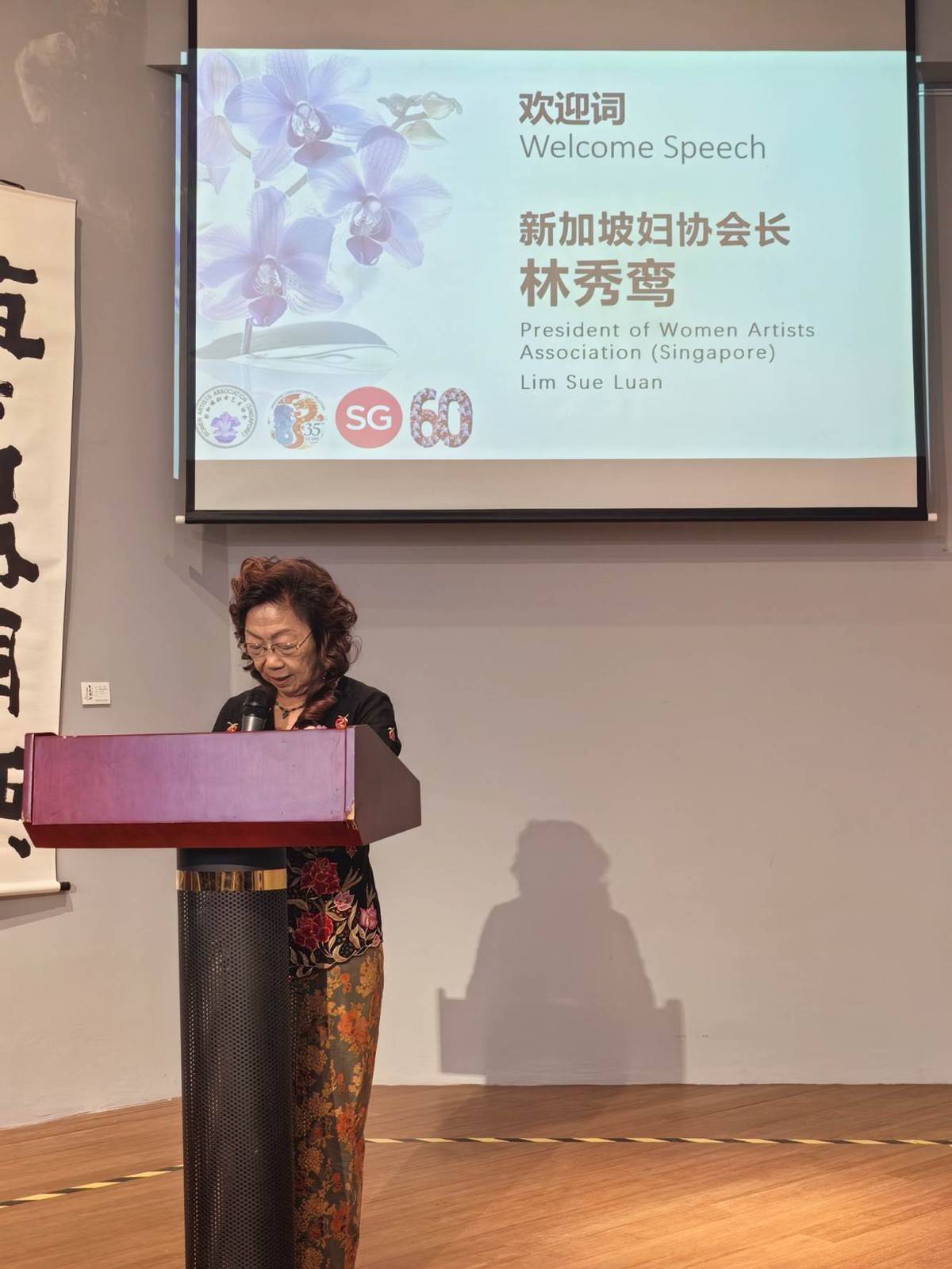 新加坡妇女艺术协会会长林秀鸾女士致欢迎词
