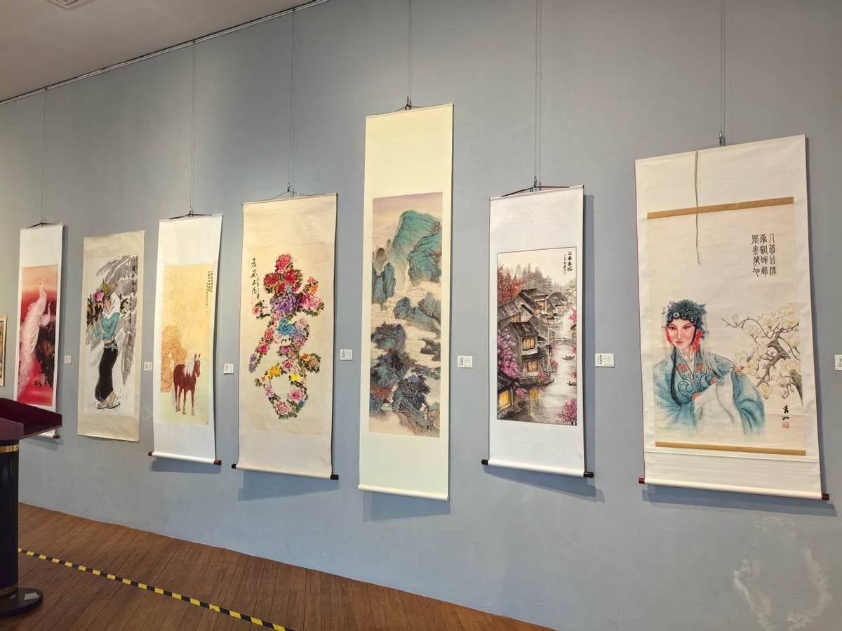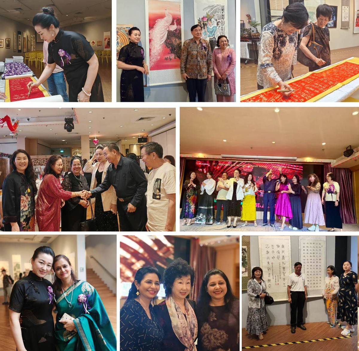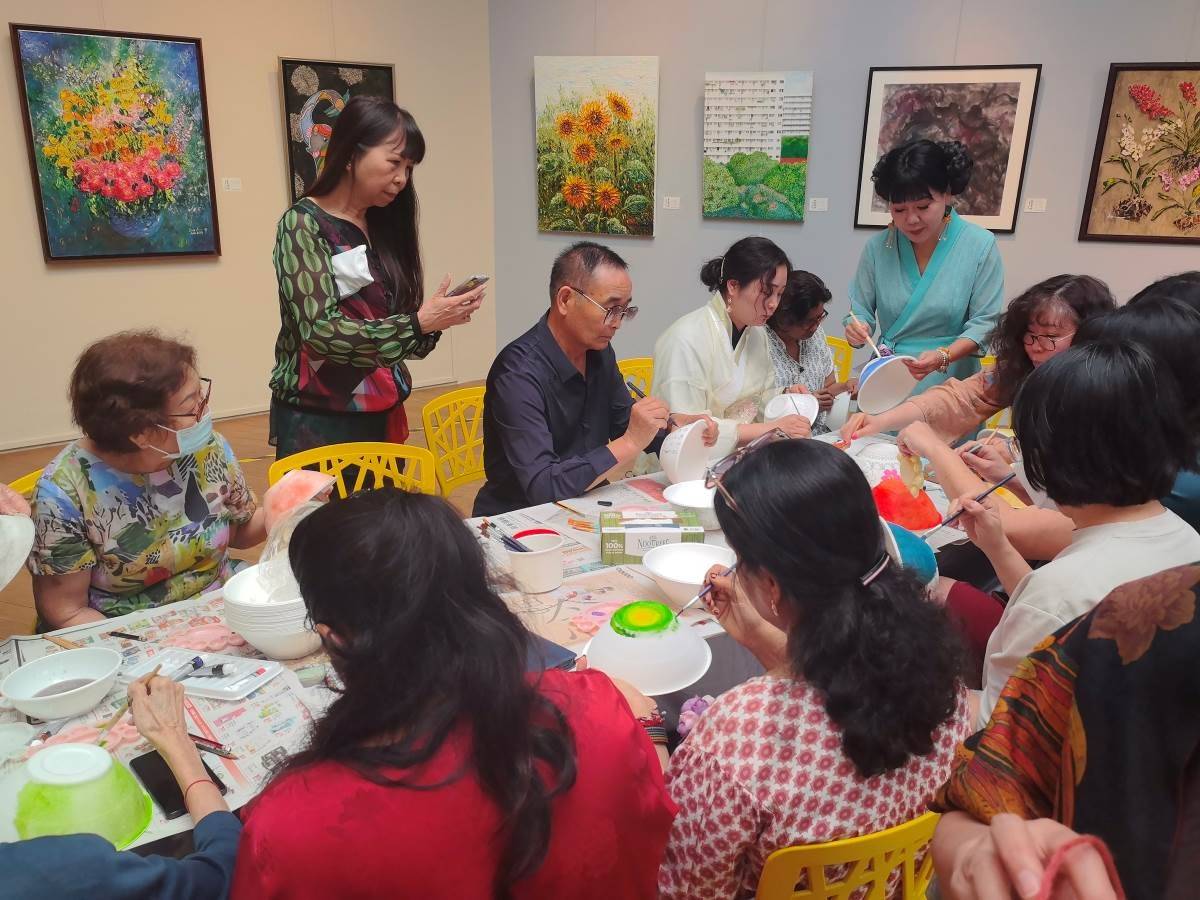 展览期间同时举办了艺术沙龙活动,两国各民族艺术家共同参与手绘碗、汉服秀、茶艺等活动,增进了友谊加深了文化交流。两国将持续推动此类活动,让书画艺术成为连接中新文化的长青纽带,助力两国文脉绵延共生。
